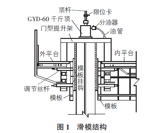 滑模主要由模板系统、操作平台系统及提升设备组成,其中提升设备包括有千斤顶、高压油管等。在滑模安装工艺中,具体的施工步骤如下:
